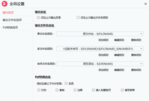 3- 对PDF文档进行批量加密,包括打开密码与权限密码,8种权限密码根据用户的使用需要进行选择