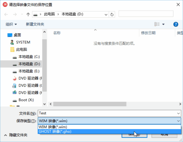 *新建映像时,默认备份类型为.wim映像,如果需要备份为.gho映像请选择“保存类型”为.gho映像即可。