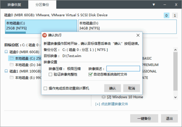 (5).wim备份时“自动忽略系统临时文件”功能可自动忽略系统垃圾与临时文件,有效减少映像体积;