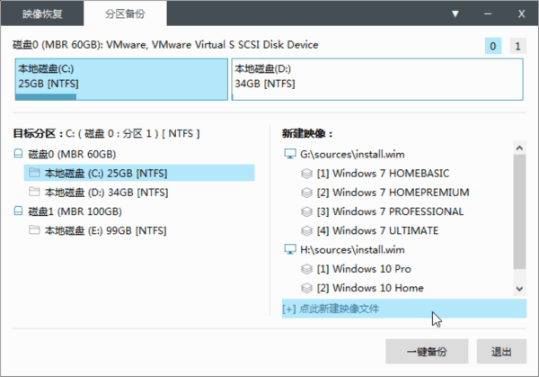 (2)下部右侧映像列表,如果备份全新映像请单击右下方“点此新建映像文件”,如果叠加子映像请直接点选主映像即可;