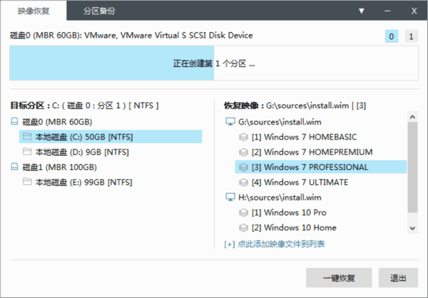 3、单击“确认”按钮后,映像恢复工作开始执行!