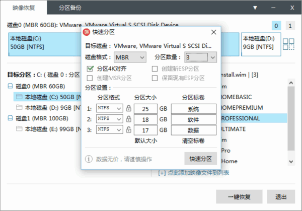 当然,EIX2的分区功能仅为快速分区,如果对分区方式要求较高,还请使用专门的分区软件。