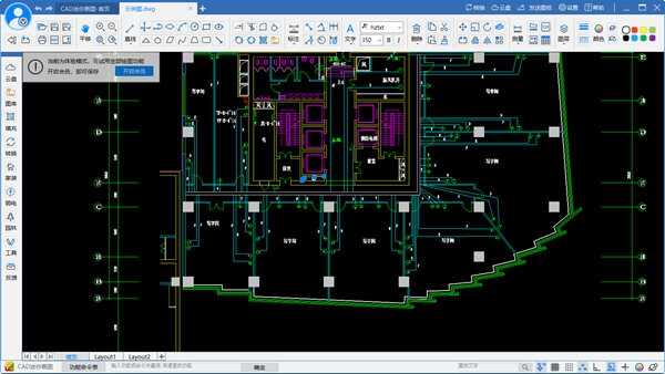 CAD迷你画图是一款功能强大的电脑CAD制图软件,能够帮助用户轻松进行各种图纸的绘制,有效的提高了用户的绘图效率和成品质量。软件已经成功破解,用户可以免费获得会员特权,免费使用会员的全部功能,满足各种使用需求。CAD迷你画图专业齐全、功能强大、简洁易用、稳定可靠,与CAD相比少了很多的不常用的功能,操作上相比CAD少了很多限制,虽然在大图的制作比CAD也许会优点不足,但是在小图的制作商绝对是足够了,有需要的朋友可以免费下载。CAD迷你画图这款经典的轻量化CAD快速制图工具,软件小安装速度快,操作简单,完全脱离AutoCAD,画图功能齐全,独有的特色功能,可大大提高制图效率。超级图库,应有尽有,包含建筑、室内、结构、电气、给排水、园林、机械等各个专业图库;转换功能,大大提高图纸转换效率,包括天正转换、PDF转CAD、批量转PDF、批量转图片和批量转版本等功能;内嵌家装、弱电、园林等专业模块,制图效率大大提高;标注功能强大,增加箭头引注、引出标注、剖切符号、图名标注等专业功能,填充图案、图形填色和测量面积支持智能识别图形边界,功能更好用;打印、导PDF和图片增加识别图框批量打印和导出,效率倍增。而且,还包括云字体、智能3D等等黑科技,免费赠送100M云盘,图纸安全同步,轻松分享,让你感受非同寻常的设计体验。