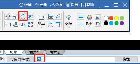点击上侧旋转功能或输入快捷命令“RO”,调起旋转命令
