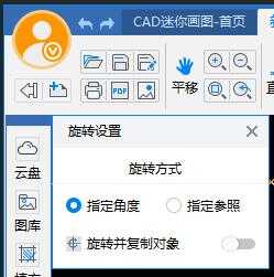 选择对象,指定旋转基点,默认指定角度旋转,可以选择指定参照旋转,更改后记住选择,关闭软件后,恢复默认