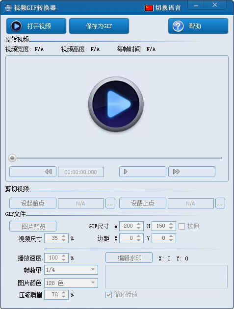 界面简单实用,用户操作方便,只需几步就能够从视频文件中截取并制作出自己的GIF文件。并且可以设置GIF的播放速度和画面质量。