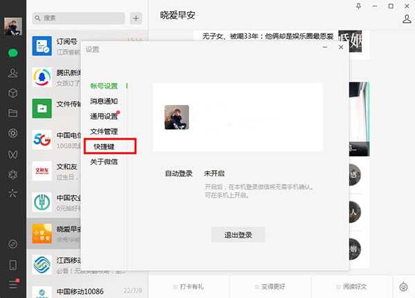 2、在左侧边栏找到“快捷键设置”,并将之打开