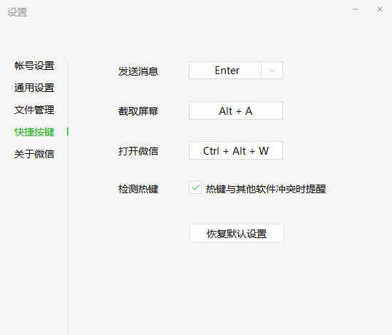 3、如图所示,目前可以自由设置的快捷键仅有“截取屏幕”和“打开微信”