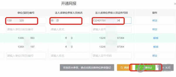第04步,添加单位参保人员的养老保险信息,然后点击“一键绑定”。