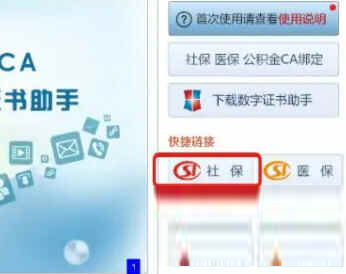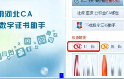 第01步,打开河北CA数字证书助手,点击“社保”按钮。