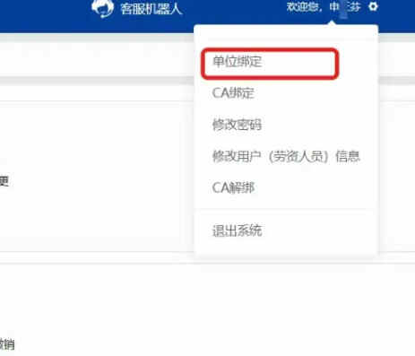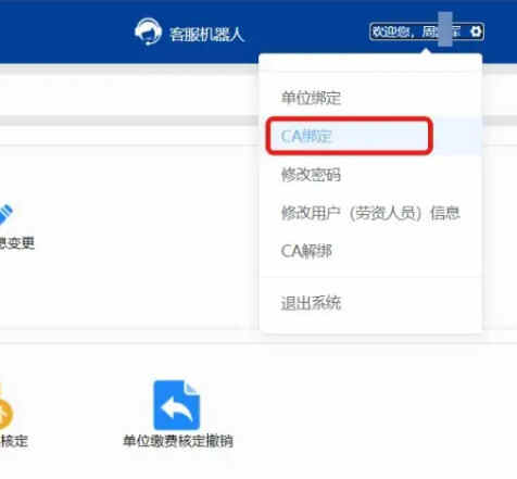 第04步,点击“欢迎你,XXX”下拉菜单中的“CA绑定”。