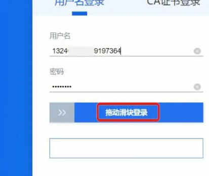 第03步,输入用户名、密码,向后拉动滑块,登录河北省社会保险公共服务平台单位网报系统。