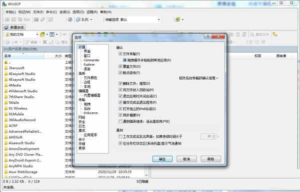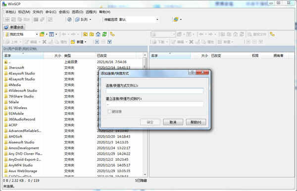 WinSCP 可以执行所有基本的文件操作,例如下载和上传。同时允许为文件和目录重命名、改变属性、建立符号链接和快捷方式。