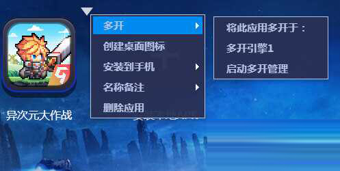 首先启动蓝叠模拟器后,你可以直接点击想要多开应用图标的右上角小箭头,点击里面的多开,然后就会打开模拟器多开管理器。