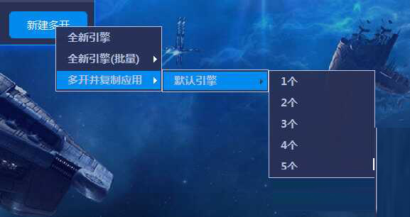 在里面点击【新建多开】-【多开并复制应用】-【默认引擎】,选择要多开的数量。