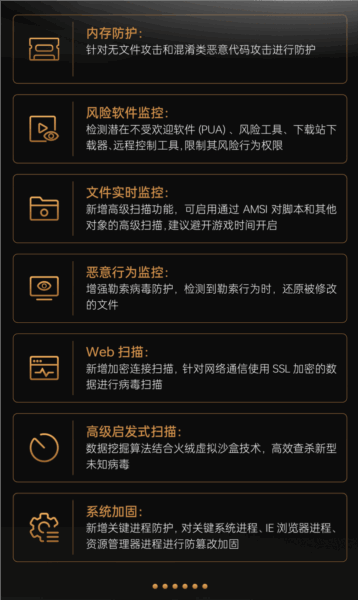 18个重要的防护功能,有效防病毒、木马、流氓软件、恶意网站等。