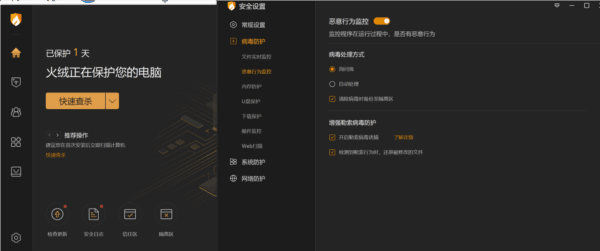 火绒安全团队也在随时更新病毒库,火绒安全虽然是个新型杀毒软件,病毒库有限,病毒识别率比不上其余的某大数字杀毒软件强大,但是火绒安全的杀毒规则可以自行配置管理,小巧流畅、不占内存,运行不卡,页面干净清爽,功能实用,自带火绒剑等扩展工具,无乱七八槽的东西;其次,自定义规则灵活。它可以全方面展开电脑安全防护功能,全面拦截网页上、下载文件中的各种各样类型的病毒。全面保护用户数据不收到任何损害。软件体积少,占用内存低,在后台还会以极低的功耗模式开启主动防御功能,也保证都不会影响电脑运行性能。火绒运用目前最强大的防火墙技术,不仅可以进行已知的病毒、木马查杀,还具有高效的位置病毒拦截功能,主动拦截防御位置的新病毒、新木马,从而最大程度保护用户电脑隐私,防止重要文件丢失。