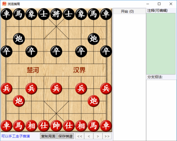 7、鹏飞象棋支持分支棋谱, 所有走过的招数, 都会被完整记录, 包括悔棋的招数, 分析模式下拆棋的招数等等, 并自动保存成pfc棋谱格式.
