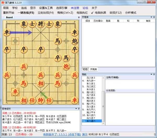 1、鹏飞象棋支持后台思考, 支持分析模式, 支持开局库