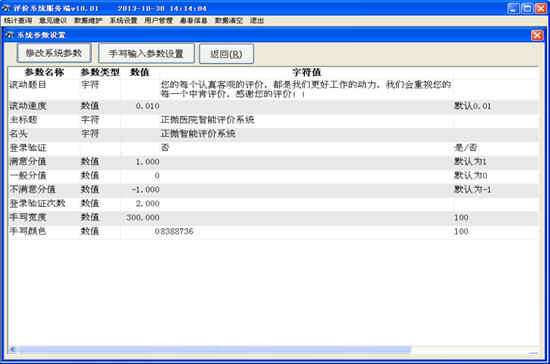首先登录正微医院智能评价系统服务端后台设置,方法有两种,一、直接双击《评价系统服务器端》,二、在正微评价系统主界面右键→设置,也可以登录到软件后台设置),登录之后点击菜单中《系统设置》