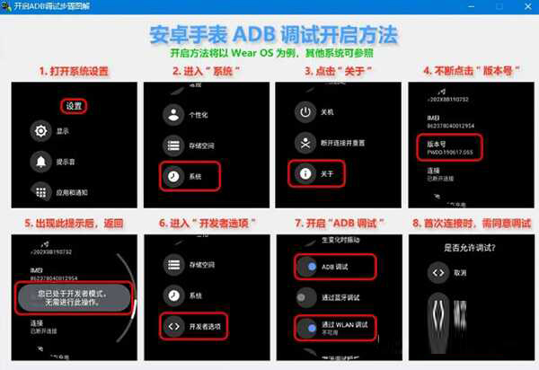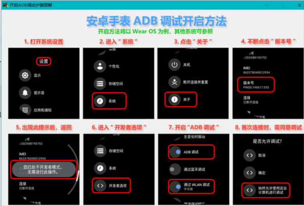 手表连接电脑,开启手表的USB调试选项(安卓手表开启USB调试的步骤如下),