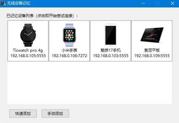 2、安卓手表ADB实用工具箱可通过有线、无线方式连接设备,支持无线设备搜索及无线设备记忆