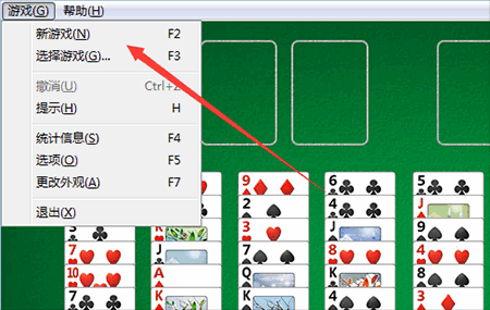 1、双击“freecell.exe”开始游戏,如果不满意牌组,可以点击游戏菜单,选择新游戏,重开一局。