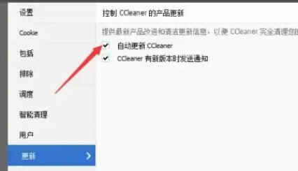 第六步:去掉勾选上自动更新CCleane 选项之后,会自动对当前设置做保存了。