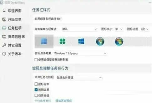 除了复原图标拖拽以及右键功能外,StartAllBack 还提供了透明任务栏、图标居中(只将程序图标居中,系统图标还是居左)、开始按钮样式、图标间距、图标大小调整等功能,因此把它作为一款美化软件来用,其实也是不错的。