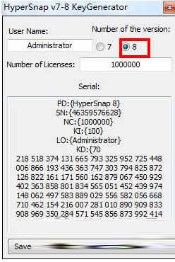 5、勾选软件版本号“8”,并点击“Generate”生成注册码