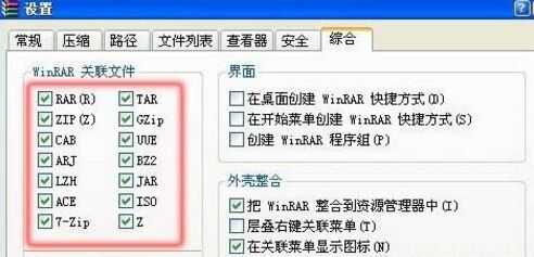 12.”设置“ > ”综合“ 对话框加入 LZ 和 ZIPX 文件关联。