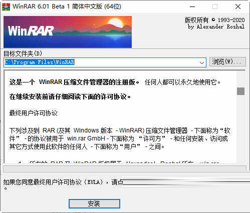 winrar绿色版无广告64位 V6.20 Beta 1 中文破解版3.57 MB