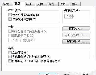 右击要压缩的文件,然后选择弹出菜单中的“添加到档案文件”命令后,就会打开WinRAR的“压缩包名称和参数”窗口。