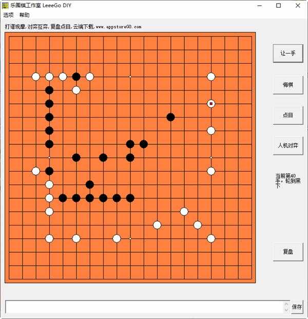 智能对弈系统:乐围棋工作室LeeeGo DIY软件采用了先进的人工智能技术,打造了一个智能对弈系统。用户可以与不同水平的AI进行对弈,锻炼自己的实战能力。同时,软件还提供了对弈复盘功能,用户可以回顾自己的对弈过程,找出不足之处并加以改进。