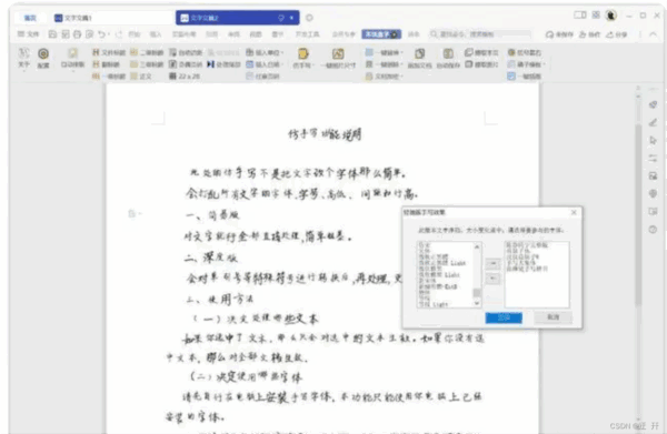 2、仿手写功能,如果选中了文字,那么对选中的文字生效;如果没选中文字,那么对全文生效;