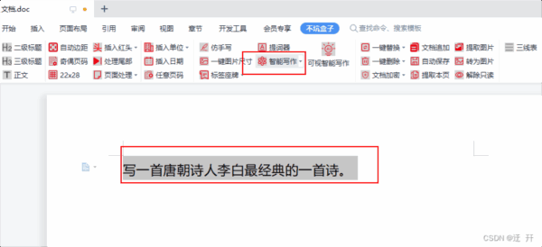 你只需在正文写出你的需求 ”xxxx“ 选中后 点击智能写作即可。