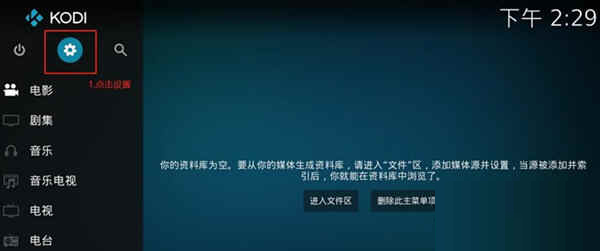 三、将U盘插入电视/盒子USB接口,打开Kodi软件(怎么设置中文版看下方链接)点击设置—插件—搜索IPTV—点击下载插件。