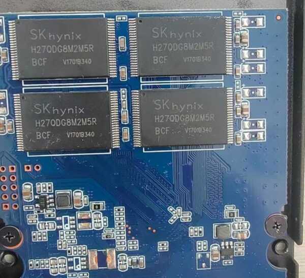 拆开看,SM2258XT主控板两面八颗海力士芯片: