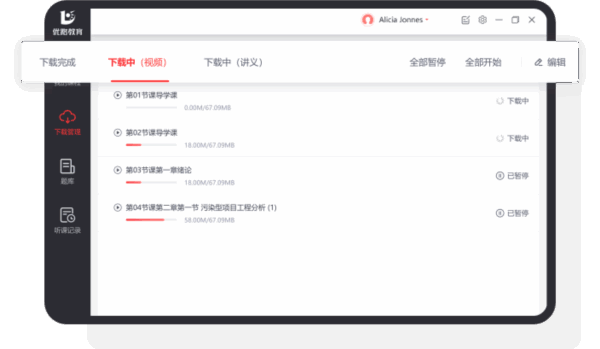 听直播、听录播、下载资料均可在客户端一站式完成,打造良好学习环境。