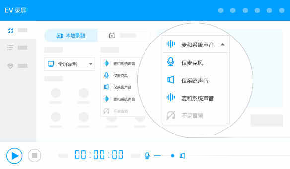 1、首先进入到EV录屏软件中,根据实际需求进行录制音频模式的选择;