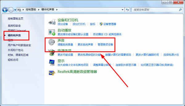 1、打开控制面板,选择硬件和声音,双击“声音”。