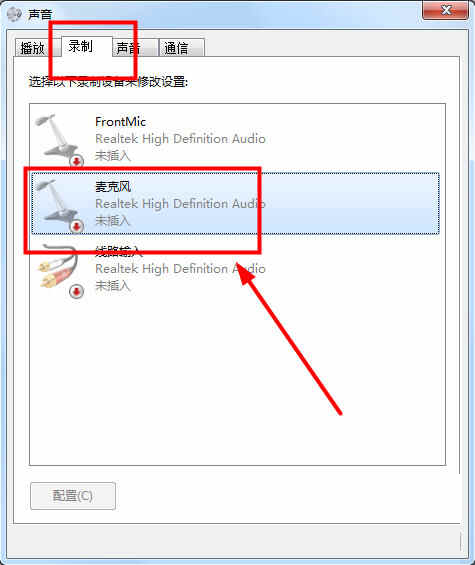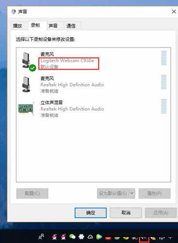 2、接着点击系统【声音】,选择【录制】,然后选择正确的默认设备,尤其是在同时插入了多个设备的时候,一定要确保默认设置是你本人现在在使用的这个;