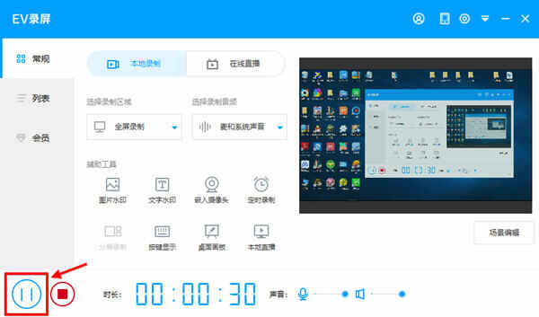7、也可以随时将鼠标指针移动至EV录屏悬浮球,来随时控制录制过程。
