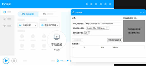 1、首先进入到EV录屏软件之中,在视频录制之前我们需要选择录制的模式,包括了本地录制和在线直播两种;