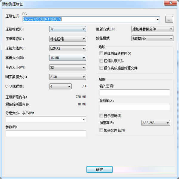 (3)加密:强大的 AES-256 加密,在解压时必须填写密码才可成功解压里面的文件,这个对于一些比较重要的资料文件来说是非常重要的。