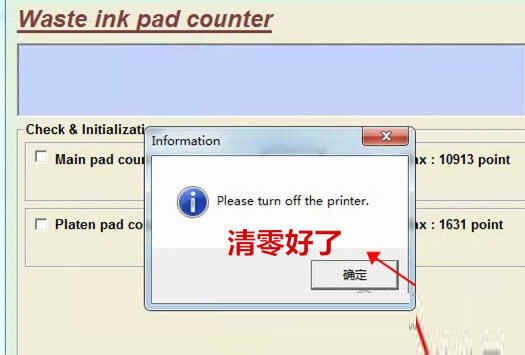 我们将打印机电源关闭, 就OK了;再把点确定,这时,就清零完成了;
