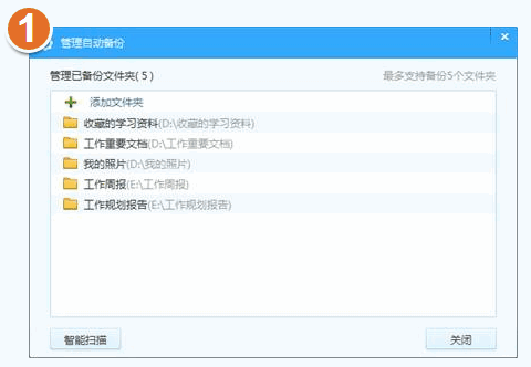 目前暂时支持自动备份5个文件夹,但您可以通过在整理文件夹,在自动备份文件夹下面【新建文件夹】或者将需要备份的文件夹移动到已关联自动备份文件夹里面。这样可以实现您的需求。