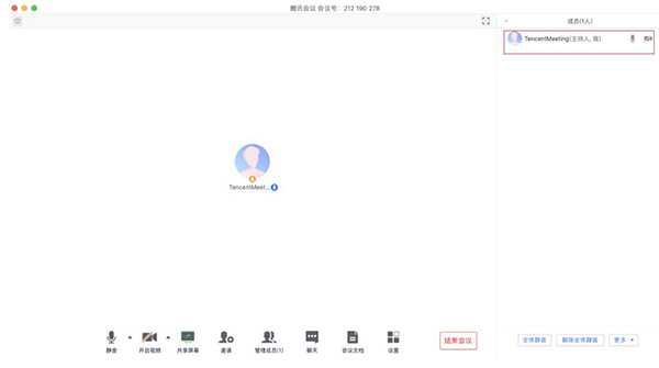 (4) 成员/管理成员:腾讯会议中,您可以在此处查看当前成员列表,如果您是主持人,还可以在此处对成员进行管理