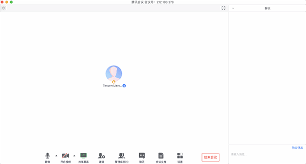 点击该按钮,即可唤出聊天窗口,当您不方便语音或被主持人静音时,您可以在该窗口和会议内其他成员进行沟通交流,目前暂不支持私人聊天功能