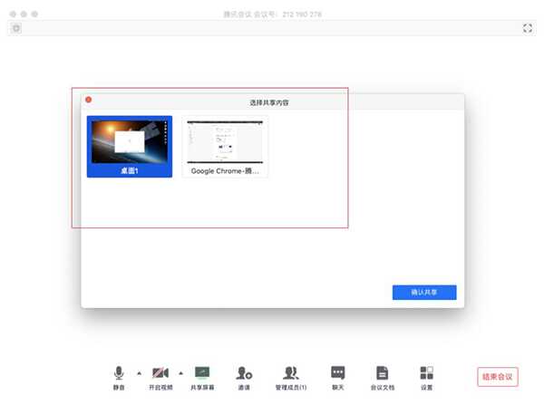 (2)腾讯会议中, 选择您希望共享的窗口或桌面